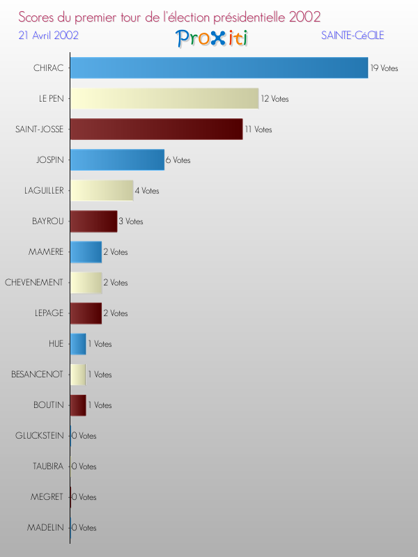 Résultats des votes à l'élection du Président de la République Française 2002 à Sainte-Cécile