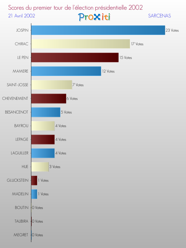 Résultats des votes à l'élection du Président de la République Française 2002 à Sarcenas