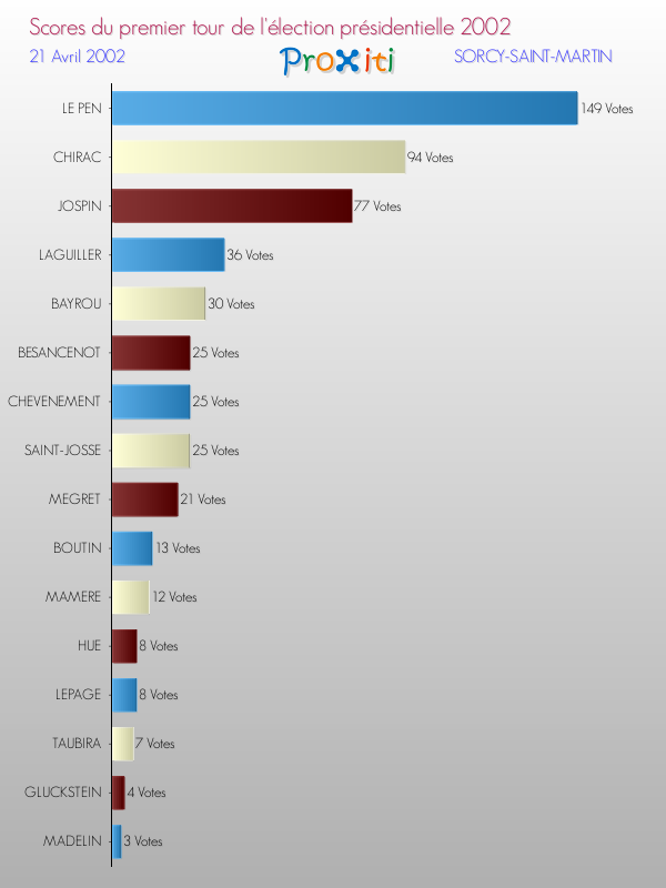 Résultats des votes à l'élection du Président de la République Française 2002 à Sorcy-Saint-Martin