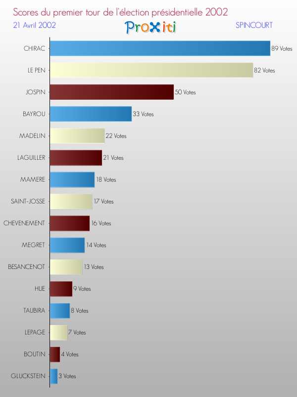 Résultats des votes à l'élection du Président de la République Française 2002 à Spincourt