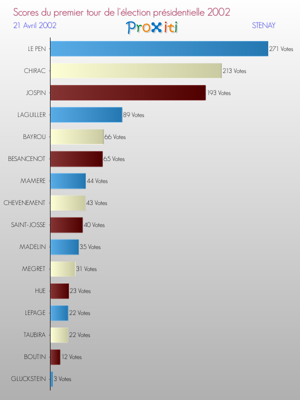 Résultats des votes à l'élection du Président de la République Française 2002 à Stenay