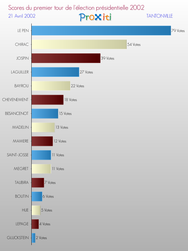 Résultats des votes à l'élection du Président de la République Française 2002 à Tantonville
