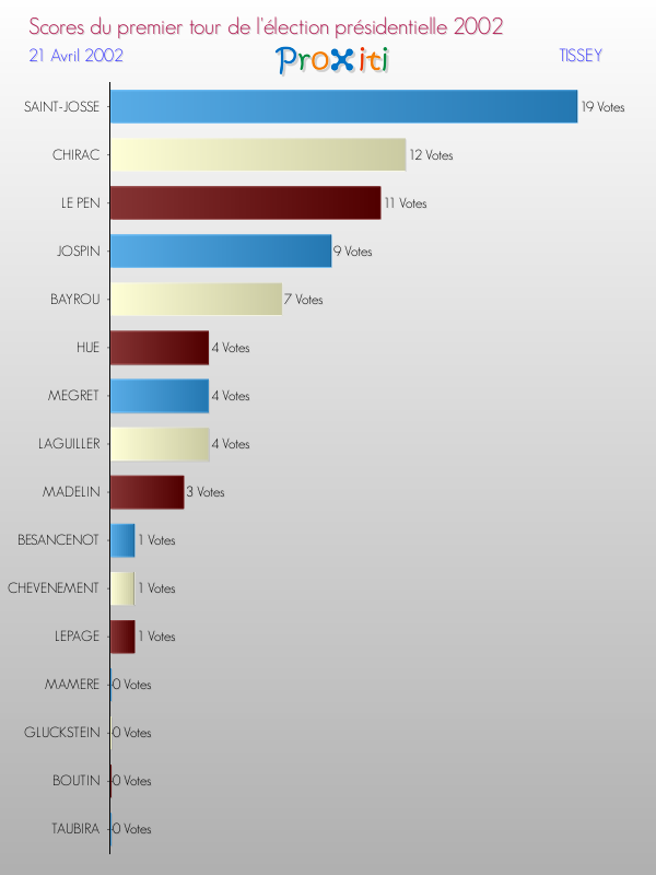 Résultats des votes à l'élection du Président de la République Française 2002 à Tissey
