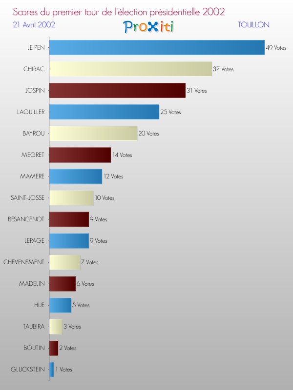 Résultats des votes à l'élection du Président de la République Française 2002 à Touillon
