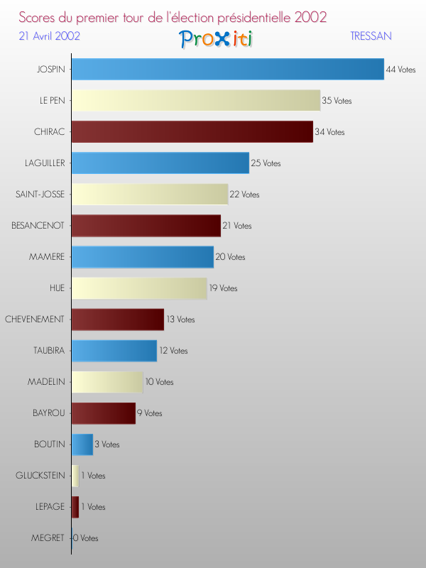 Résultats des votes à l'élection du Président de la République Française 2002 à Tressan