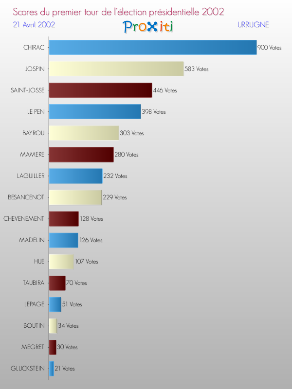 Résultats des votes à l'élection du Président de la République Française 2002 à Urrugne