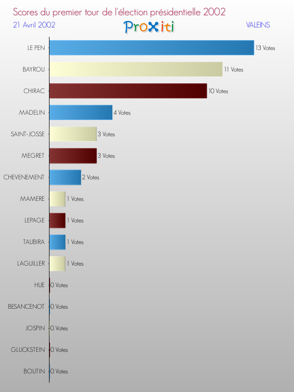 Résultats des votes à l'élection du Président de la République Française 2002 à Valeins