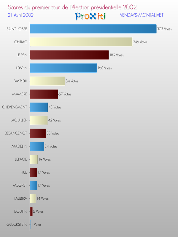 Résultats des votes à l'élection du Président de la République Française 2002 à Vendays-Montalivet