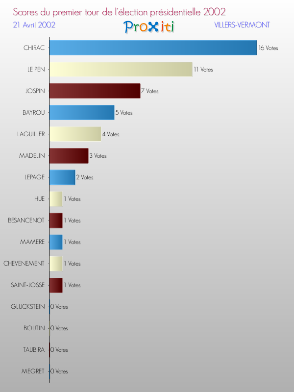 Résultats des votes à l'élection du Président de la République Française 2002 à Villers-Vermont