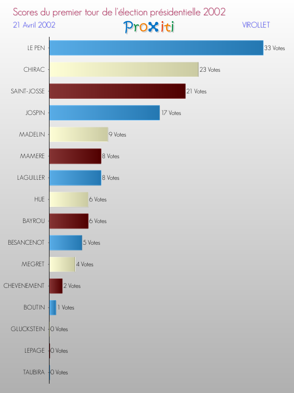 Résultats des votes à l'élection du Président de la République Française 2002 à Virollet