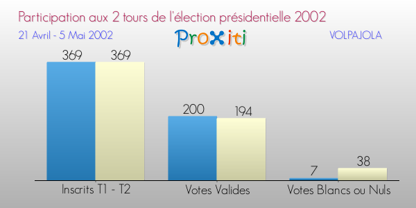 Résultats des votes à l'élection du Président de la République Française 2002 à Volpajola