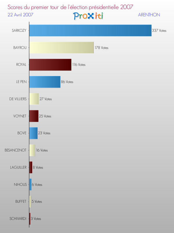 Résultats des votes à l'élection du Président de la République Française 2007 à Arenthon