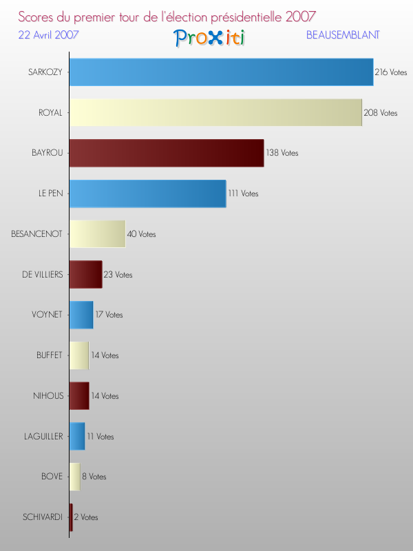 Résultats des votes à l'élection du Président de la République Française 2007 à Beausemblant