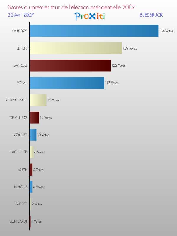 Résultats des votes à l'élection du Président de la République Française 2007 à Bliesbruck
