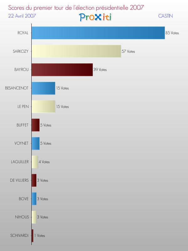 Résultats des votes à l'élection du Président de la République Française 2007 à Castin