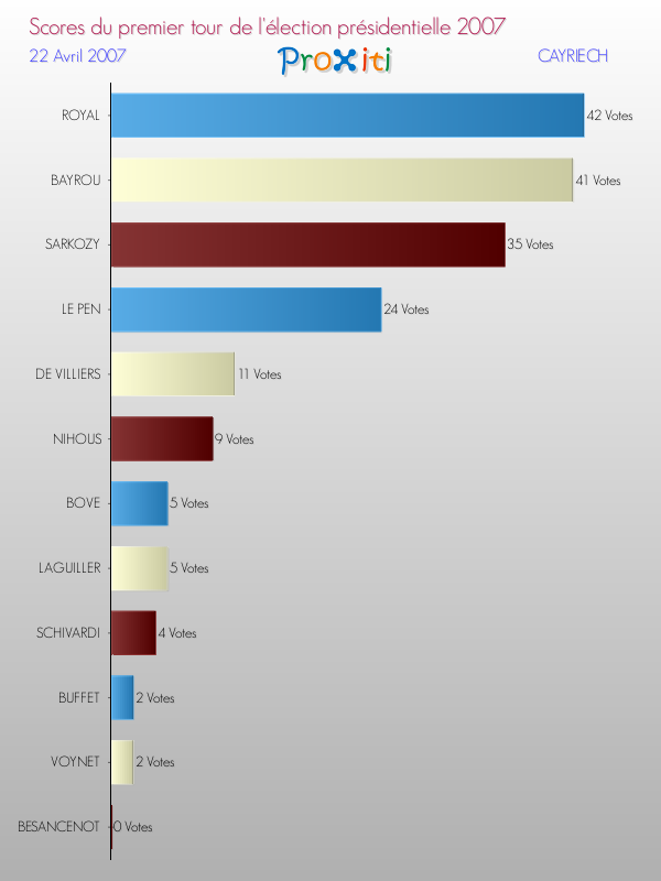 Résultats des votes à l'élection du Président de la République Française 2007 à Cayriech