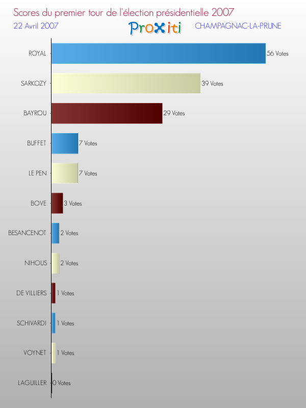 Résultats des votes à l'élection du Président de la République Française 2007 à Champagnac-la-Prune