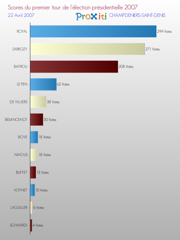 Résultats des votes à l'élection du Président de la République Française 2007 à Champdeniers-Saint-Denis