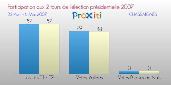 Résultats des votes à l'élection du Président de la République Française 2007 à Chassaignes
