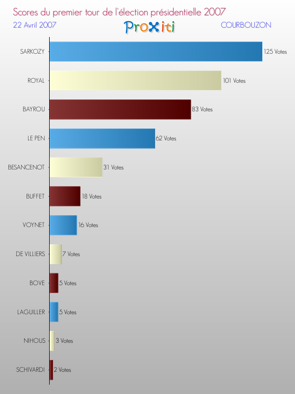Résultats des votes à l'élection du Président de la République Française 2007 à Courbouzon