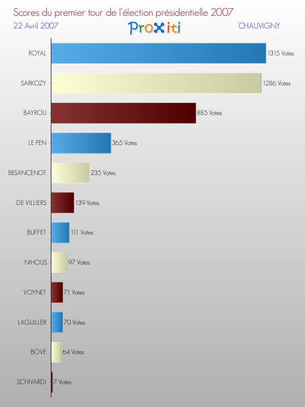 Résultats des votes à l'élection du Président de la République Française 2007 à Chauvigny