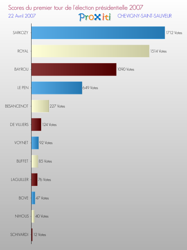 Résultats des votes à l'élection du Président de la République Française 2007 à Chevigny-Saint-Sauveur