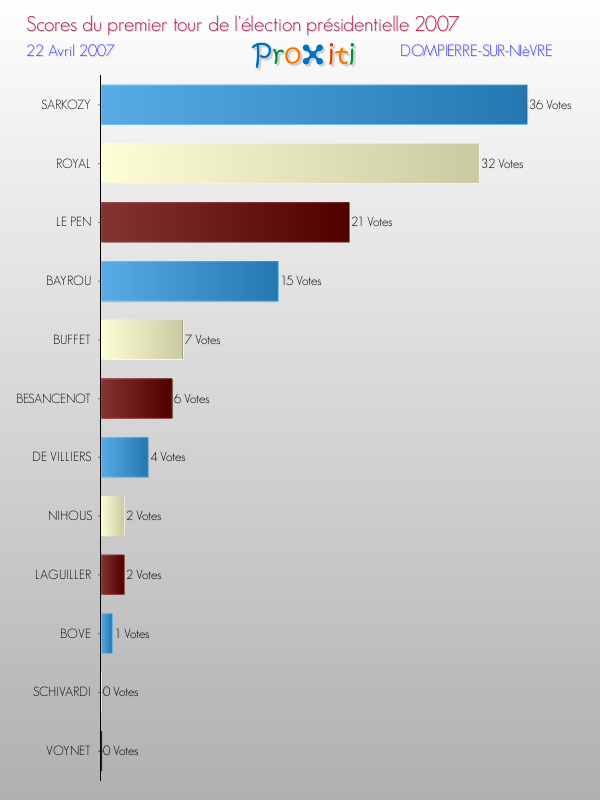 Résultats des votes à l'élection du Président de la République Française 2007 à Dompierre-sur-Nièvre