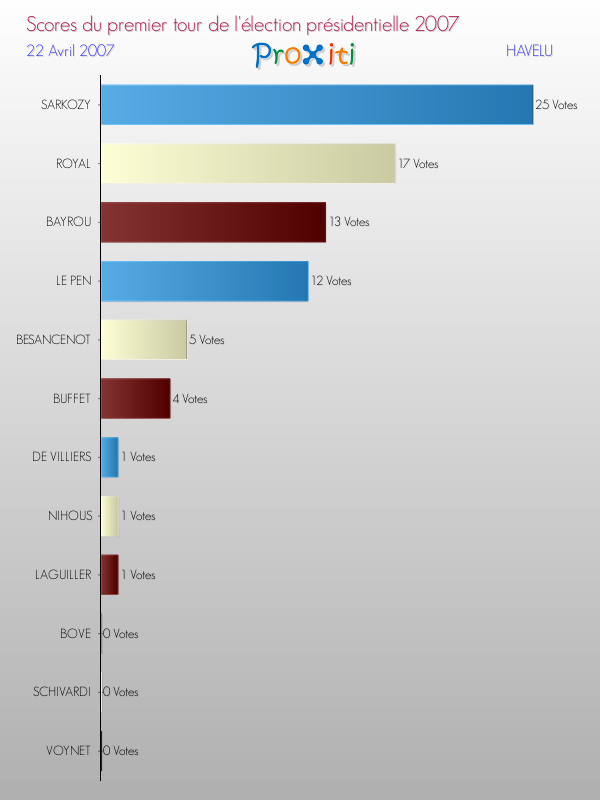 Résultats des votes à l'élection du Président de la République Française 2007 à Havelu