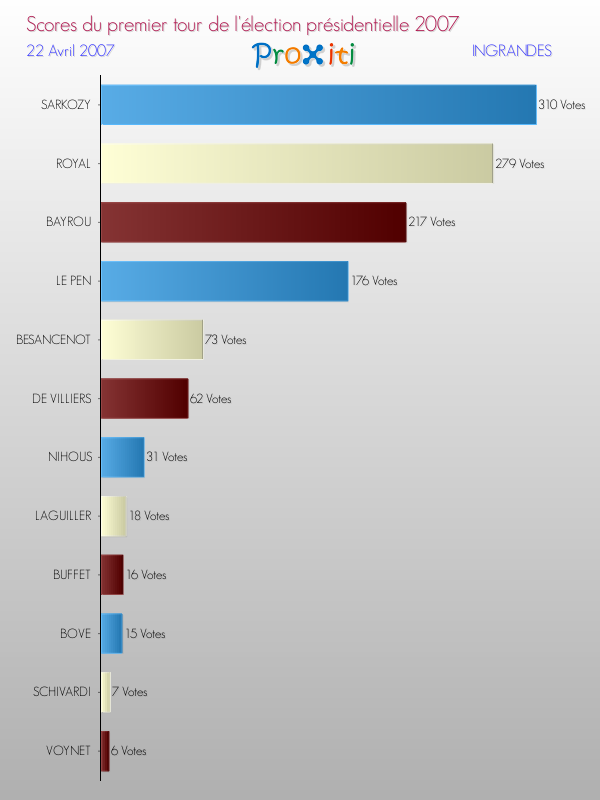 Résultats des votes à l'élection du Président de la République Française 2007 à Ingrandes