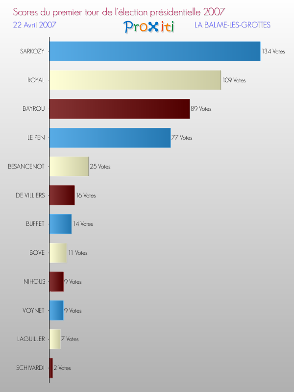 Résultats des votes à l'élection du Président de la République Française 2007 à La Balme-les-Grottes