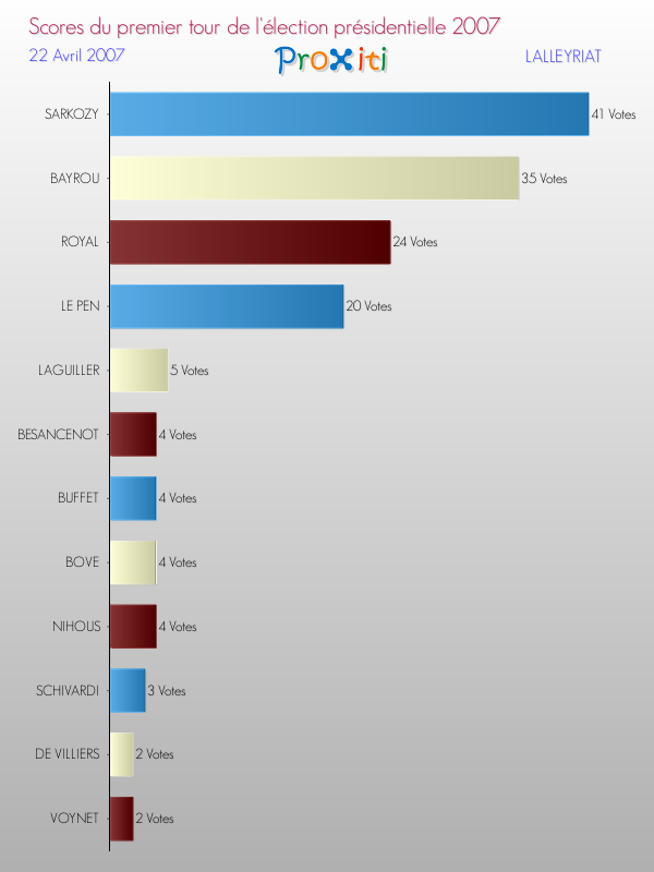 Résultats des votes à l'élection du Président de la République Française 2007 à Lalleyriat