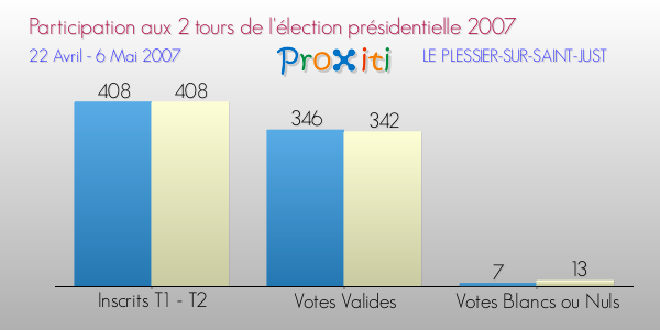 Résultats des votes à l'élection du Président de la République Française 2007 à Le Plessier-sur-Saint-Just