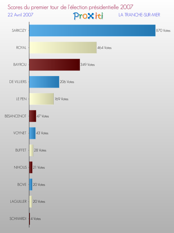 Résultats des votes à l'élection du Président de la République Française 2007 à La Tranche-sur-Mer