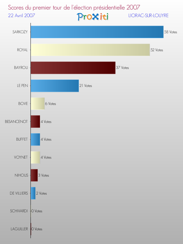 Résultats des votes à l'élection du Président de la République Française 2007 à Liorac-sur-Louyre