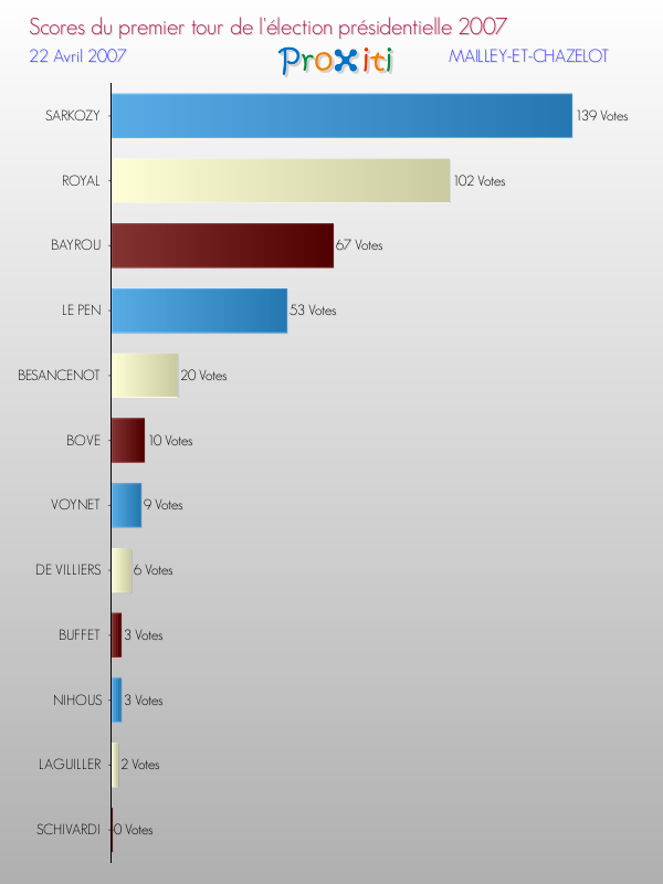 Résultats des votes à l'élection du Président de la République Française 2007 à Mailley-et-Chazelot