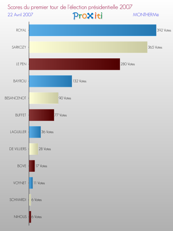 Résultats des votes à l'élection du Président de la République Française 2007 à Monthermé