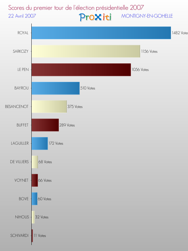 Résultats des votes à l'élection du Président de la République Française 2007 à Montigny-en-Gohelle