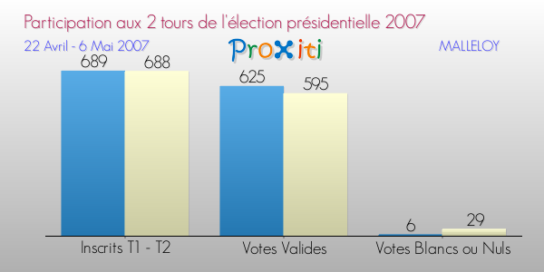 Résultats des votes à l'élection du Président de la République Française 2007 à Malleloy