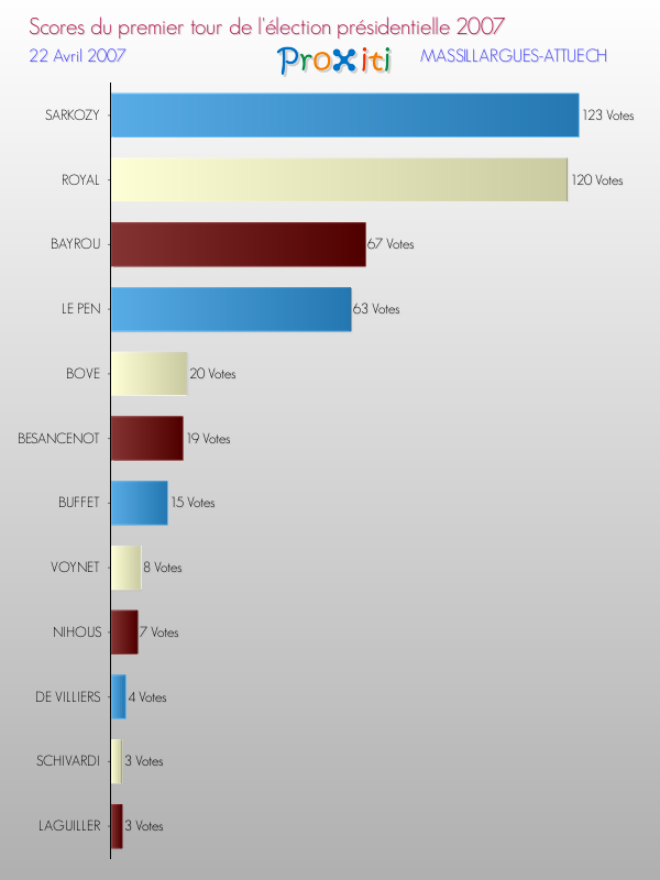 Résultats des votes à l'élection du Président de la République Française 2007 à Massillargues-Attuech