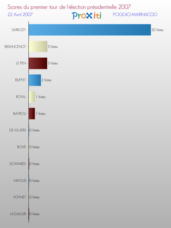 Résultats des votes à l'élection du Président de la République Française 2007 à Poggio-Marinaccio