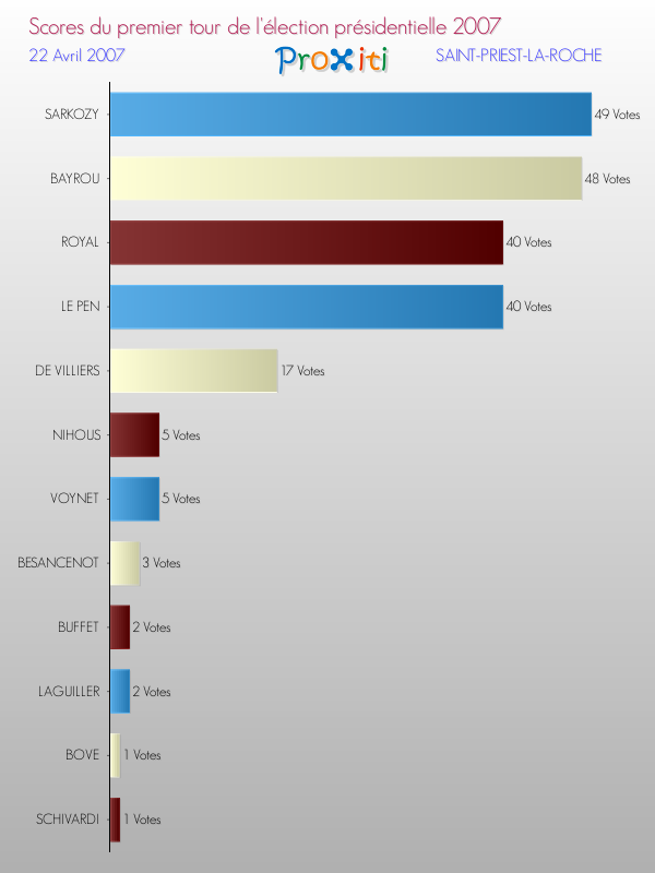 Résultats des votes à l'élection du Président de la République Française 2007 à Saint-Priest-la-Roche