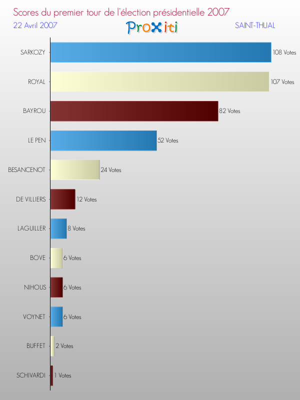 Résultats des votes à l'élection du Président de la République Française 2007 à Saint-Thual