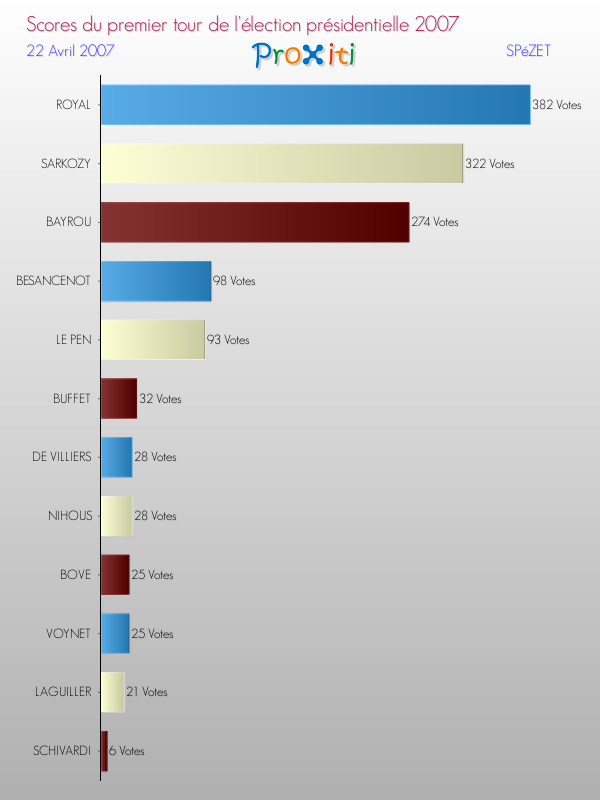 Résultats des votes à l'élection du Président de la République Française 2007 à Spézet