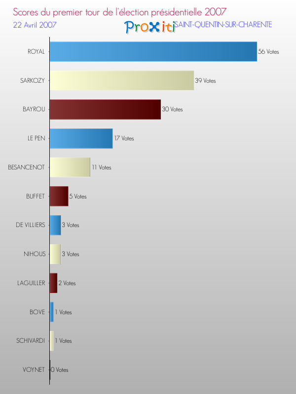 Résultats des votes à l'élection du Président de la République Française 2007 à Saint-Quentin-sur-Charente