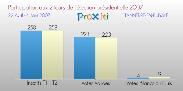 Résultats des votes à l'élection du Président de la République Française 2007 à Tannerre-en-Puisaye
