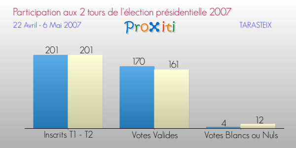 Résultats des votes à l'élection du Président de la République Française 2007 à Tarasteix