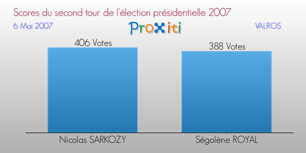 Résultats des votes à l'élection du Président de la République Française 2007 à Valros