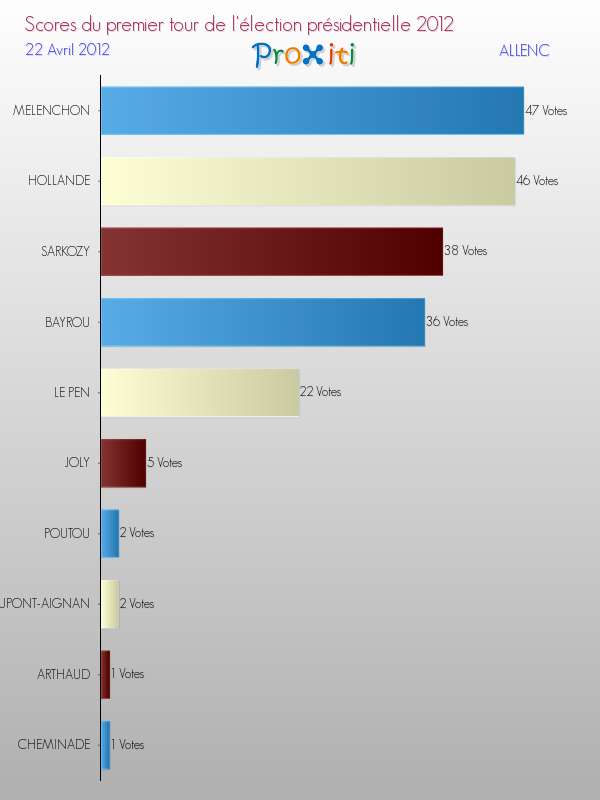 Résultats des votes à l'élection du Président de la République Française 2012 à Allenc