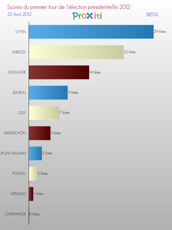 Résultats des votes à l'élection du Président de la République Française 2012 à Bizou