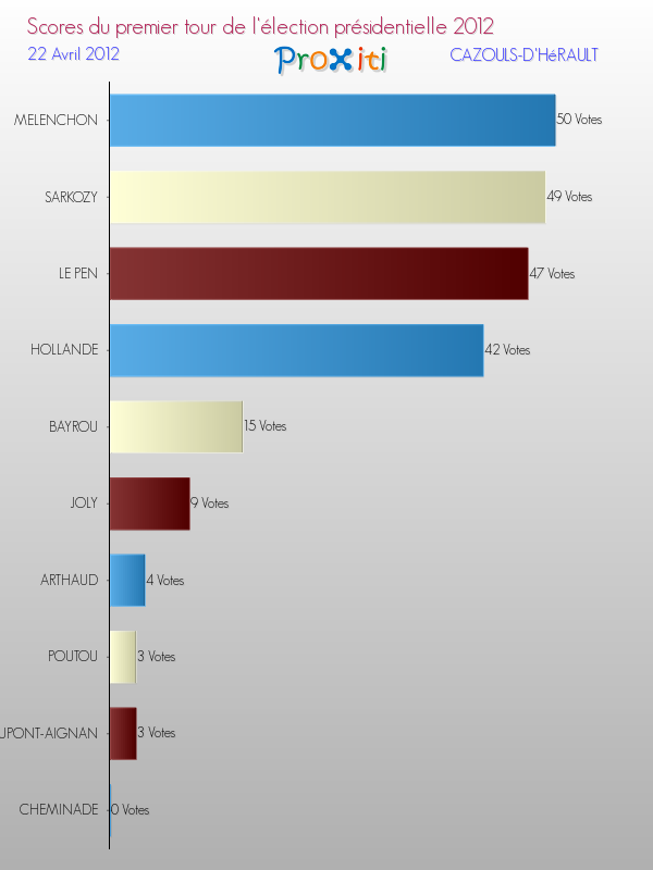 Résultats des votes à l'élection du Président de la République Française 2012 à Cazouls-d'Hérault